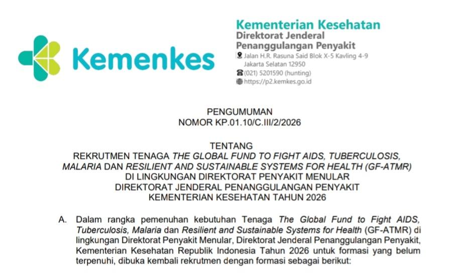 Pengumuman Rekrutmen Tenaga Program Global Fund (GF-ATMR) Tahun 2026